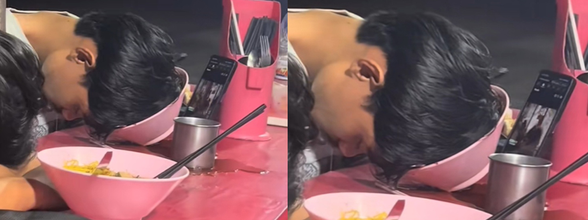 ยาสระผมเข้าด่วน พาเพื่อนกินบะหมี่หลังดื่มเสร็จ อยู่ ๆ ภาพตัดจนหัวจุ่มชาม