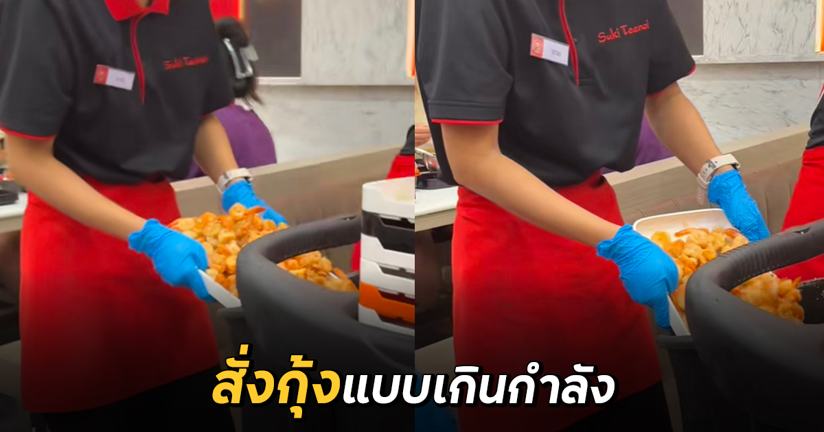 แบบนี้ก็ได้เหรอ กินบุฟเฟต์ที่ร้าน เห็นโต๊ะข้าง ๆ สั่งกุ้ง กินเกินกำลัง จนพนักงานเททิ้ง