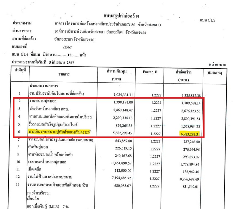 เมื่อทางเพจค้นข้อมูลโครงการเพื่อดูราคาของแถมนี้ ผ่านระบบ e-GP พบว่าเป็น โครงการก่อสร้างสนามกีฬาประจำ อ.สะเดา จ.สงขลา งบประมาณก่อสร้าง 35 ล้านบาท ตั้งงบประมาณปีงบประมาณ พ.ศ. 2567 จำนวน 5 ล้านบาท ผูกพันปีงบประมาณ พ.ศ. 2568 จำนวน 30 ล้านบาท ด้วยวิธีประกวดราคาอิเล็กทรอนิกส์ (e-bidding) กำหนดราคากลางไว้ที่ 35,011,159.46 บาท และได้จัดทำด้วยวงเงินสัญญา 34,990,000 บาท