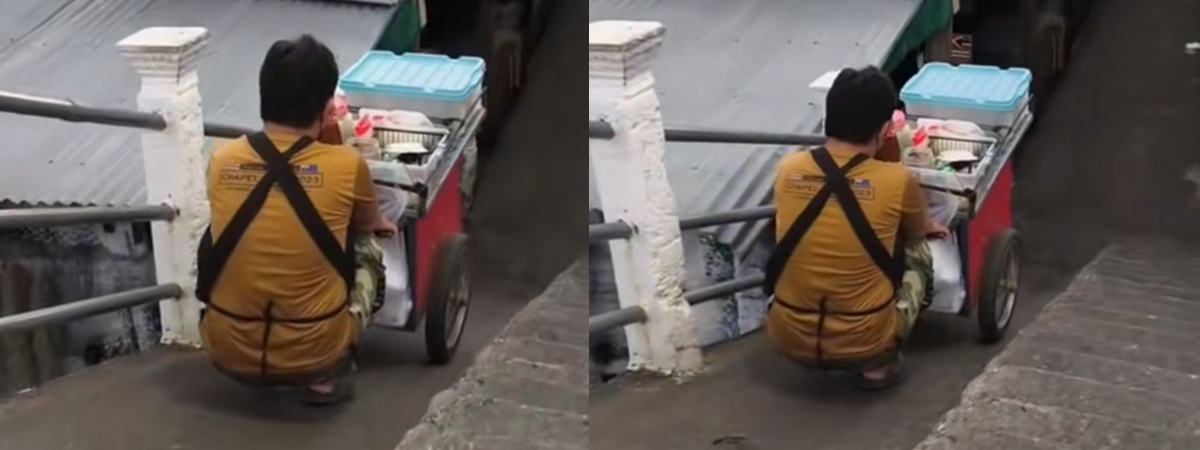 ผู้ใช้ TikTok @kubfah8 ได้เผยภาพพ่อค้าท่านหนึ่ง ใช้วิธีเอารถเข็นลงจากสะพานอย่างปลอดภัย ด้วยการเอาตัวนั่งยอง ๆ แล้วจับประคองรถเข็นให้มั่น ปล่อยให้ลื่นแบบค่อย ๆ ลงจอดอย่างสวยงาม เหมือนกับเล่นสกียังไงยังงั้น มีความท้าทายกฎการเคลื่อนที่ของนิวตัน แค่คนไทยเท่านั้นที่ทำแบบนี้ได้