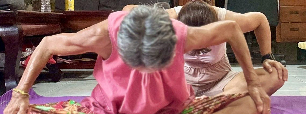 เฟซบุ๊ก Sim Saithong Moungmanee ได้โพสต์ในกลุ่ม ออกกำลังกาย fit and firm ซึ่งเป็นภาพของคุณยายวัย 82 ปี ยังคงความฟิตและแข็งแรง ออกกำลังกายด้วยการเล่นโยคะ ประโยชน์ในการเล่นโยคะสำหรับผู้สูงอายุ ช่วยยืดเหยียดกล้ามเนื้อ ลดตึงเครียด เพิ่มความยืดหยุ่นและการทรงตัว แถมทำให้จิตใจสงบ นอนหลับดีขึ้น สร้างแรงบันดาลใจในการดูแลตัวเองให้ชาวเน็ต จนเป็นไวรัลดังในตอนนี้