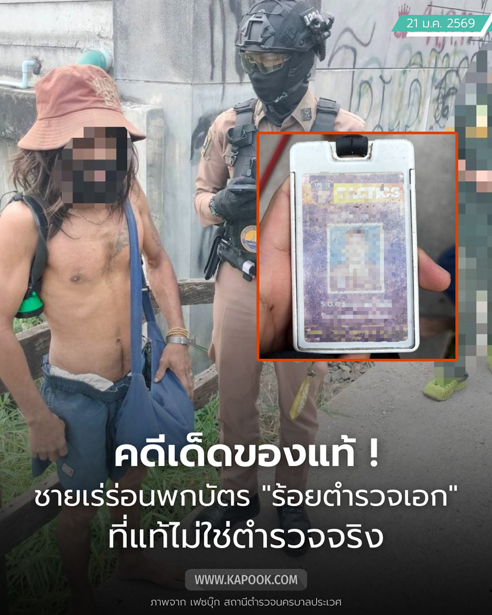 ภาพดังกล่าวได้รับการเปิดเผยโดยเฟซบุ๊ก สถานีตำรวจนครบาลประเวศ ในวันนี้ (20 มกราคม 2569) พร้อมข้อความ "ผม ร้อยตำรวจเอก ปลอมตัวมา"