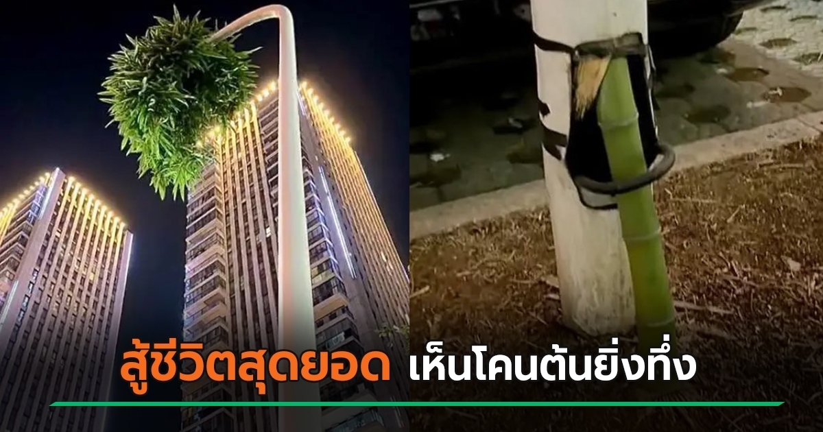 ต้นไผ่ประหลาด โผล่ชูยอดเหนือเสาไฟกลางเมืองสูง 6 เมตร ทำคนแปลกใจจนเป็นไวรัล เห็นโคนต้นยิ่งตะลึง เรียกว่า "ต้นไผ่สู้ชีวิต"