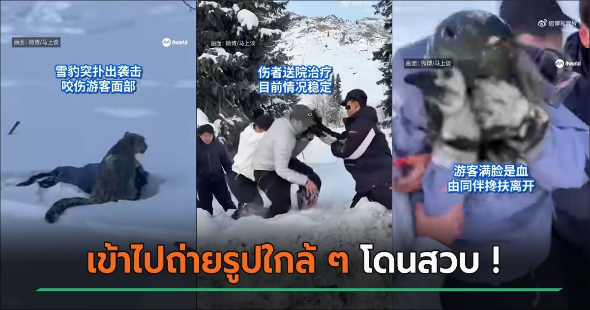 ช็อก นทท.สาวถูกเสือดาวหิมะขย้ำหน้า หลังเข้าไปถ่ายรูปใกล้ ๆ คนอื่นเตือนแล้วไม่ฟัง จนท.รีบช่วยด่วน ย้ำเห็นสัตว์ป่าอย่าเข้าใกล้ - ต้องแจ้งตำรวจ