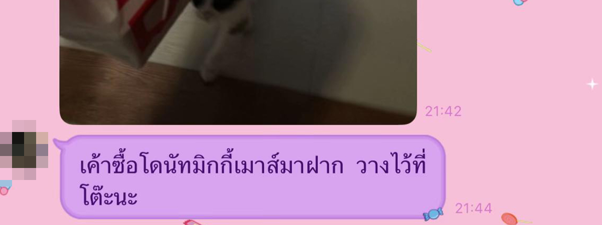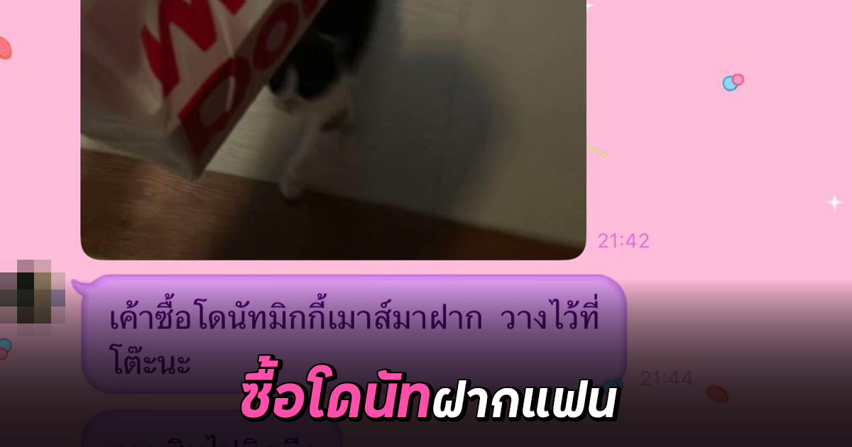 ผู้ใช้ TikTok @1669_crazy ได้เผยภาพหนุ่มคนหนึ่ง ซื้อโดนัทแบรนด์ดังไปฝากแฟน ซึ่งเป็นโดนัทรูปมิกกี้เมาส์ คอลเลกชันพิเศษของแบรนด์ พร้อมมีแชตบอกอีกว่า แอบชิมไปนิดนึง หลังจากที่เอากล่องโดนัทไปวางที่โต๊ะ พอเปิดดูข้างในกล่องเท่านั้นแหละ จากมิกกี้เมาส์เป็นมิกกี้เว้าทันที เล่นชิมหมดทุกชิ้นเลยทีเดียว