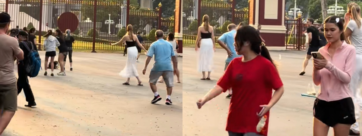 ผู้ใช้ TikTok @gung.pupe_manaschon ได้เผยภาพนักท่องเที่ยวชาวต่างชาติ เดินผ่านลานเต้นแอโรบิก ที่สวนลุมพินี เห็นคนอื่นเขาเต้นกัน แถมเพลงยังมันอีกด้วย มันอดไม่ได้ที่จะไปร่วมออกสเต็ปกับเขาด้วย แถมท่าเต้นยังเป๊ะกว่าชาวบ้านซะอีก