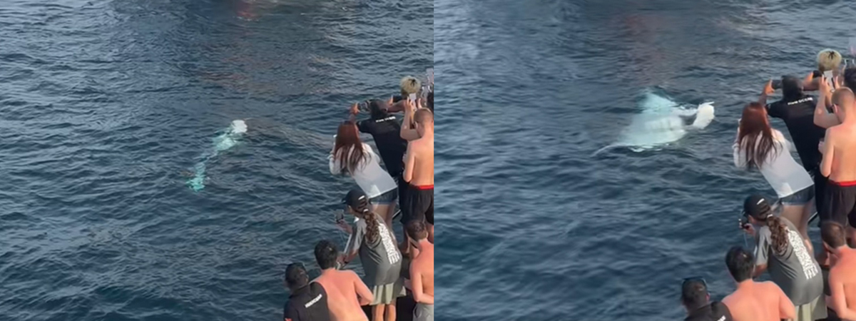 ผู้ใช้ TikTok @ma_yaooo ได้เผยนาทีนักท่องเที่ยวต่างชาติ ล่องเรือชมความงดงามของทะเลภูเก็ต ระหว่างนั้นมีปลากระเบนราหูตัวใหญ่ โผล่ปรากฏตัวให้เห็นเหนือน้ำ แล้วนาน ๆ ทีได้เห็นอะไรแบบนี้ ผู้คนบนเรือพากันส่งเสียงฮือฮาสนั่น
