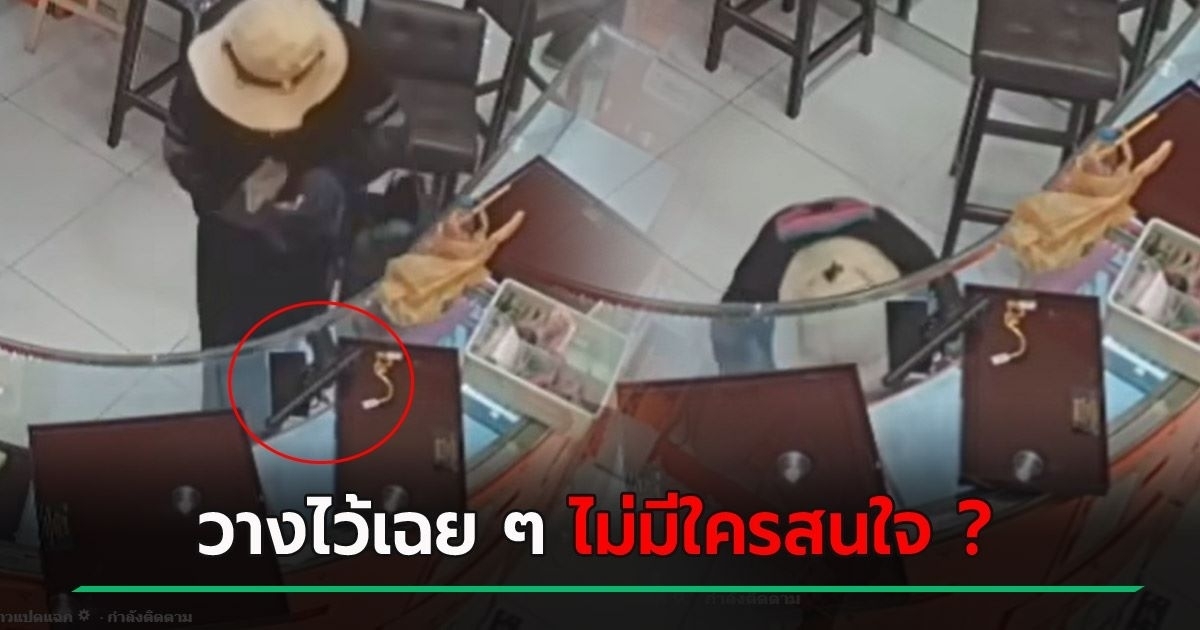 เปิดจุดชวนเอ๊ะ ร้านทอง วงจรปิดจับชัดทำถุงใส่ทองหล่น 12 วินาที วางปืนทิ้งไว้บนเคาน์เตอร์เฉย ๆ ไม่สนใจ แถมพบเปิดประตูแง้มไว้ประจำ ตำรวจไม่ปักใจเชื่อลงมือคนเดียว