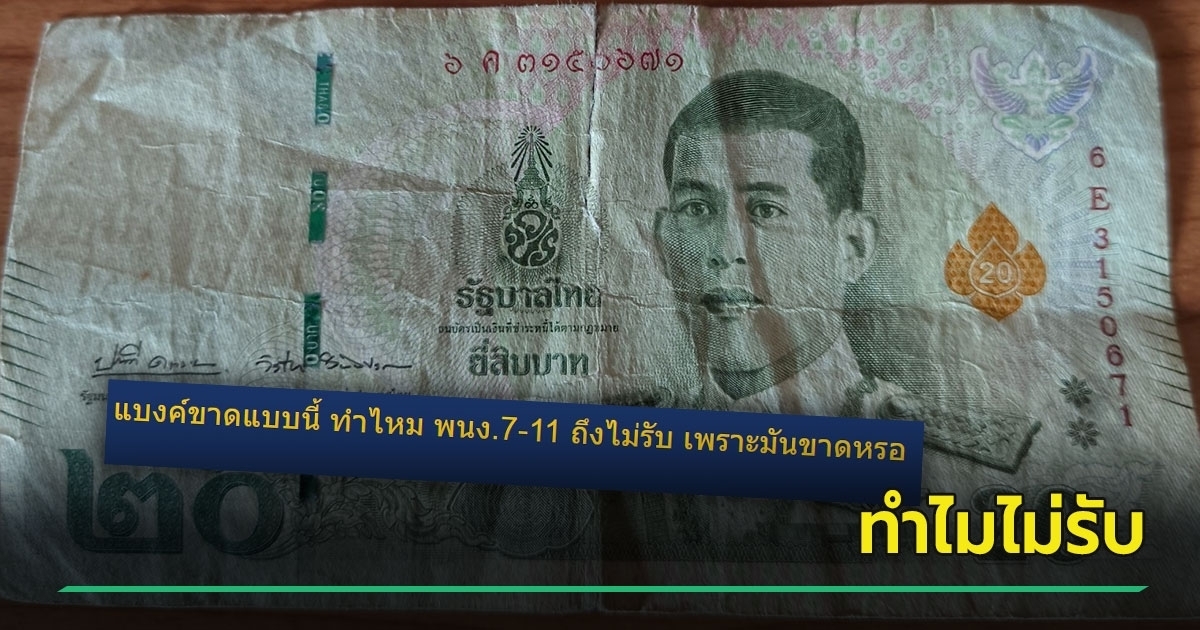 วันที่ 2 กุมภาพันธ์ 2569 คุณ สมาชิกหมายเลข 9253178 สมาชิกเว็บไซต์พันทิปดอทคอม มีการเล่าเรื่องการใช้ธนบัตร 20 บาท สภาพเก่ายับเยิน มีรอยขาดไปครึ่งหนึ่ง แต่พนักงานเซเว่น อีเลฟเว่น ไม่ได้รับ มีรายละเอียดดังนี้