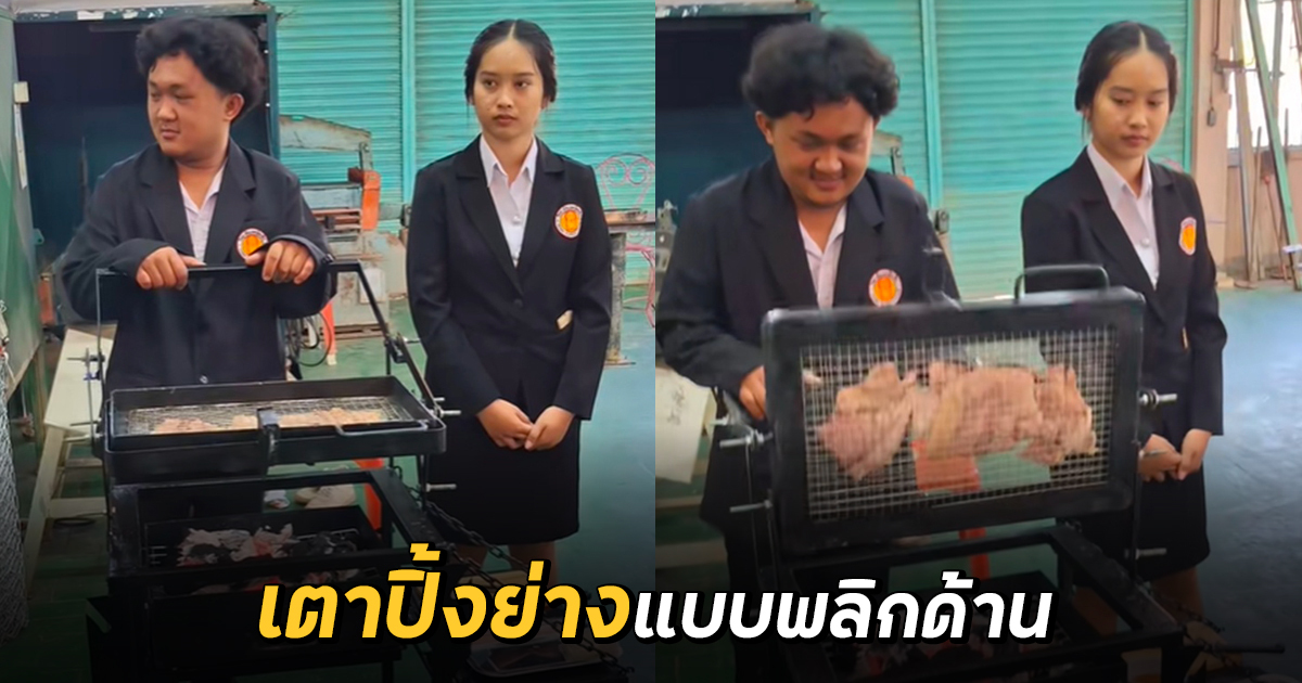 ถูกใจสายปิ้งย่าง เด็กไทยโชว์ฝีมือ ประดิษฐ์เตาปิ้งย่างแบบกลับด้าน ใช้งานง่ายขึ้น