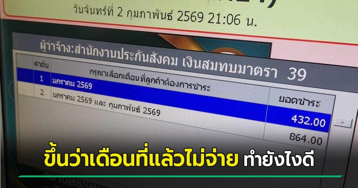 วันที่ 3 กุมภาพันธ์ 2569 เฟซบุ๊ก Drama-addict มีการโพสต์การร้องเรียนของผู้ประกันตน ม.39 ว่า เมื่อวานนี้ไปจ่ายเงินประกันสังคมที่ร้านสะดวกซื้อ แต่กลับมี 2 ยอด คือ ของเดือนมกราคมและเดือนกุมภาพันธ์ ทั้งที่ความจริงรอบก่อนหน้าจ่ายไปแล้ว ดังนั้นจึงถามพนักงานว่า คนเจอแบบนี้บ่อยไหม พนักงานบอกว่า เป็นกันเยอะ
