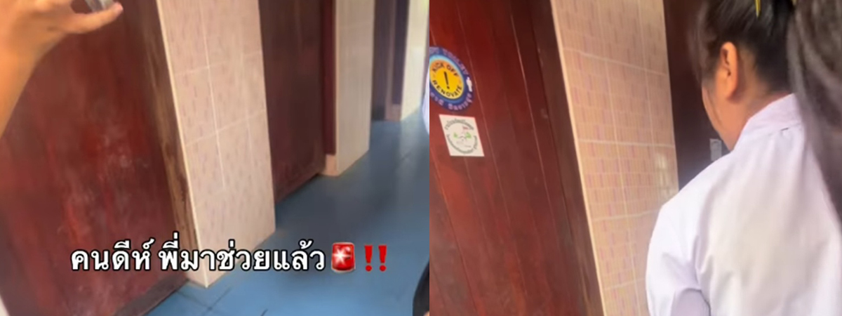 ประตูแทบพัง เมื่อพี่ ม.6 รู้ว่ารุ่นน้องติดในห้องน้ำ เลยหาทางช่วยแบบสายสตรอง