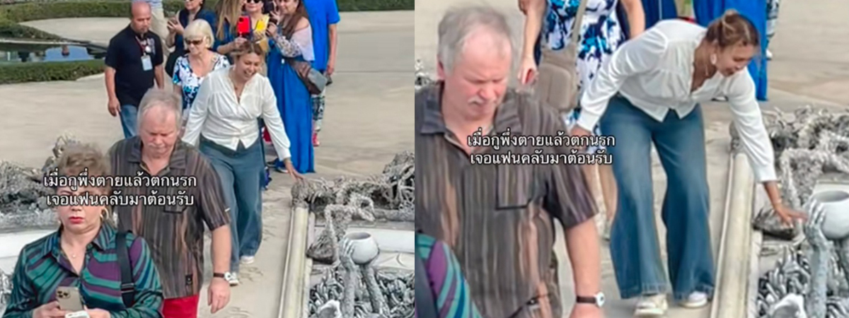 ผู้ใช้ TikTok @natacha76351 ได้เผยภาพสาวคนหนึ่ง ไปเที่ยววัดร่องขุ่น เดินเยี่ยมชมความงดงามของงานประติมากรรมระหว่างนรกและสวรรค์ ดูเหมือนเธอคนนี้เตรียมซ้อมตกนรกไว้ล่วงหน้า เห็นแฟนคลับยื่นมือมา เลยทักทายแทบทุกคน ไม่ว่าจะไปที่ไหน คนไทยก็มักจะเป็นคนตลกทุกเมื่อ