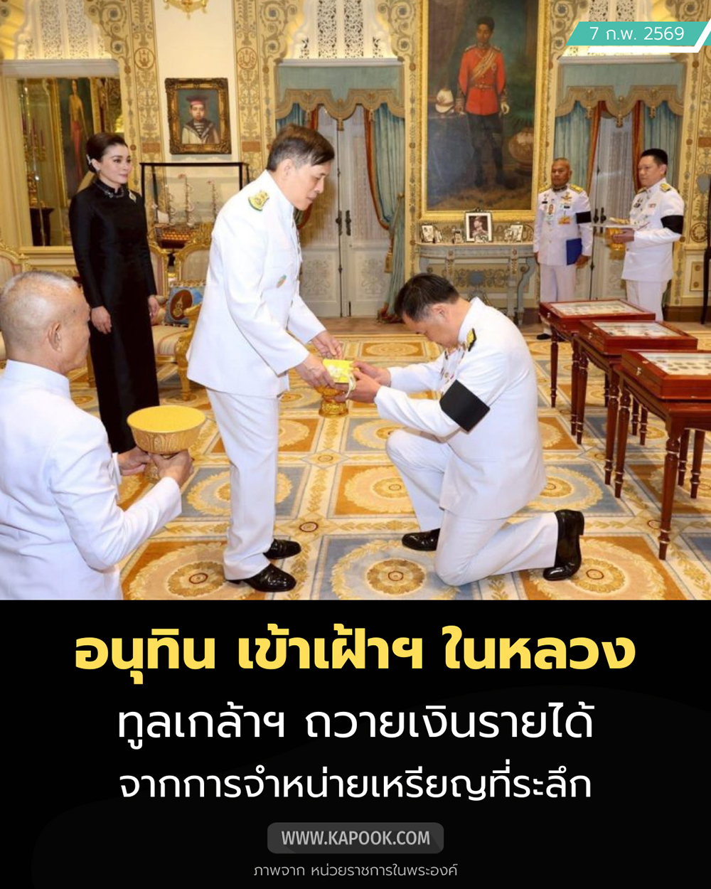 วันที่ 7 กุมภาพันธ์ 2569 เฟซบุ๊ก พระลาน รายงานว่า เมื่อเวลา 18.10 น. พระบาทสมเด็จพระเจ้าอยู่หัว