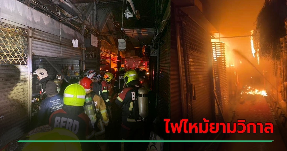 ไฟไหม้ตลาดนัดจตุจักรยามวิกาล เพลิงลุกไหม้ 2 ล็อก 28 ร้านค้าเสียหาย ควบคุมเพลิงได้แล้ว