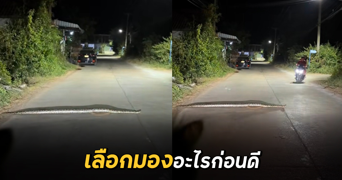 จังหวะโบ๊ะบ๊ะไปอีก ขับรถเจองูขวางถนน แต่พอเห็นคนข้างหน้า ไม่รู้จะโฟกัสอะไรก่อนดี
