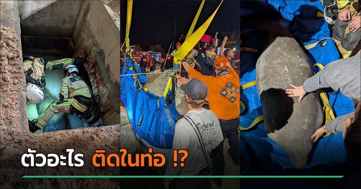 จนท. เดินสำรวจท่อ อึ้งเจอสิ่งมีชีวิตตัวใหญ่ หนักเกือบ 200 กก. ติดอยู่คาท่อระบายน้ำ คาดตั้งใจจะหาแหล่งน้ำที่อุ่นขึ้น กลับมาติดแหง็ก ต้องระดมทีมช่วย
