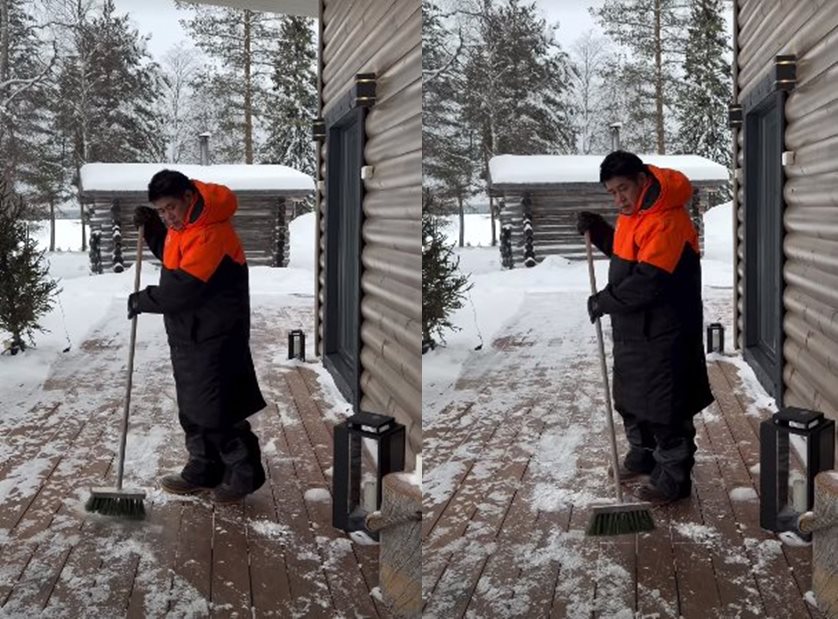 นอกจากนี้ จุ๊บจิ๊บ ยังโพสต์คลิปวิดีโอแสดงให้เห็นวิถีพ่อบ้านคนขยัน ธรรมนัส ถือไม้กวาดมากวาดหิมะที่บริเวณลานหน้าบ้านด้วยตัวเอง ด้วยเสื้อสีส้มที่สดใสโดดเด่น ทำเอาหลาย ๆ คนถึงกับหลุดโฟกัส สะดุดตาเต็ม ๆ