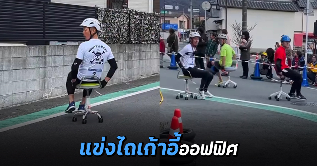 ใช้เวลาแข่งราว 2 ชั่วโมง แข่งกีฬาสุดแปลก ไถเก้าอี้ออฟฟิศ งานนี้พี่ญี่ปุ่นเขาเอาจริง