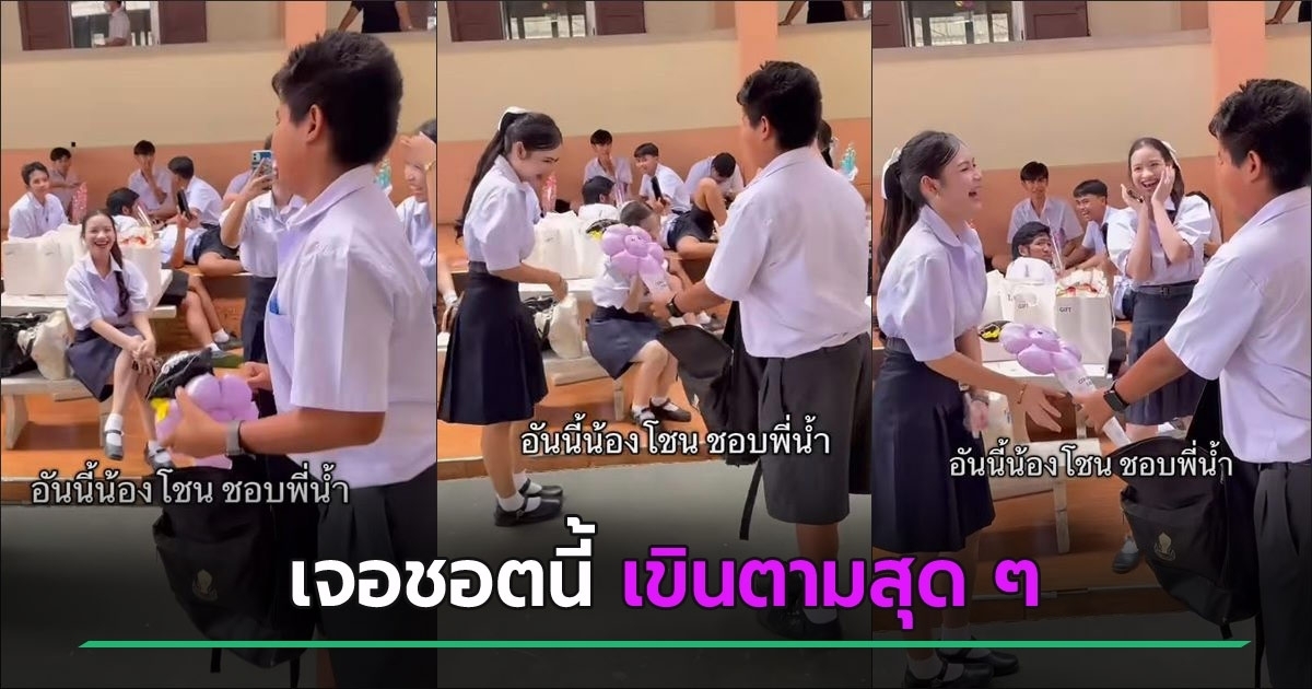 โมเมนต์สุดใจฟู รุ่นน้อง ม.1 รวบรวมความกล้า มอบดอกไม้บอกความในใจรุ่นพี่ ม.6 กลางสนามโรงเรียน ทำเอาชาวเน็ตแห่เอ็นดู ยอดวิวพุ่ง 11 ล้าน