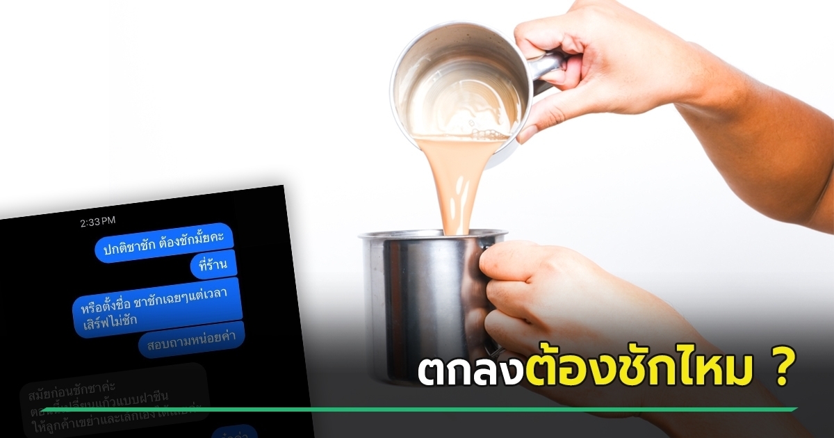 ร้านตอบมาว่า สมัยก่อนมีการชักชาจริง แต่ตอนนี้พอเปลี่ยนแก้วจากฝาโดนเป็นฝาซีน วิธีการชักชาก็ไม่ต้องอีกแล้ว ลูกค้าสามารถเขย่าเองได้เลย