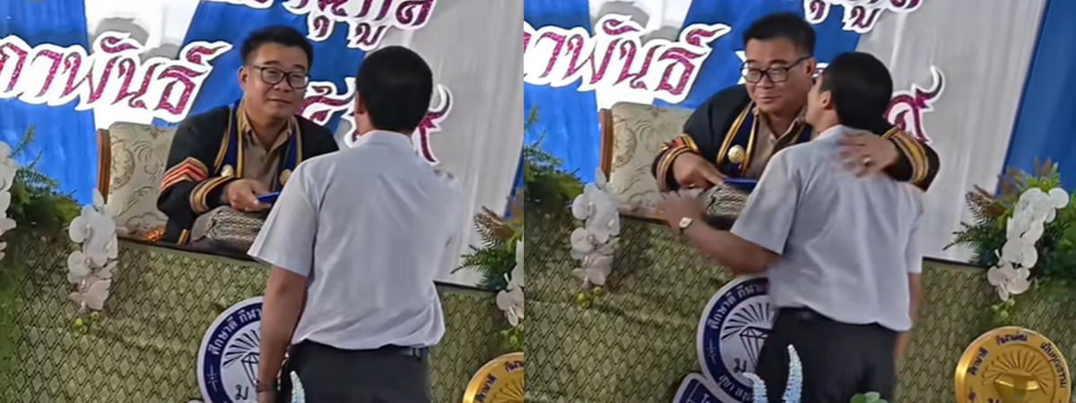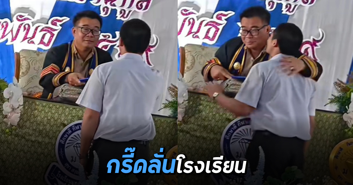 ผู้ใช้ TikTok @ploy_wang1 ได้เผยภาพ ผอ. โรงเรียนมอบเกียรติบัตร ให้กับนักเรียนที่สำเร็จการศึกษา มีอยู่คนหนึ่ง ขอท่าน ผอ. ถ่ายรูปพร้อมกับหอมแก้มไปหนึ่งที นอกจากจะกรี๊ดสนั่นแล้ว ยังทำ ผอ. เสียอาการหนักไม่แพ้กัน จนคนพากันแซวว่า ซีรีส์วายเรื่องนักเรียนตัวร้ายกับ ผอ. ขี้อายต้องเข้าแล้ว