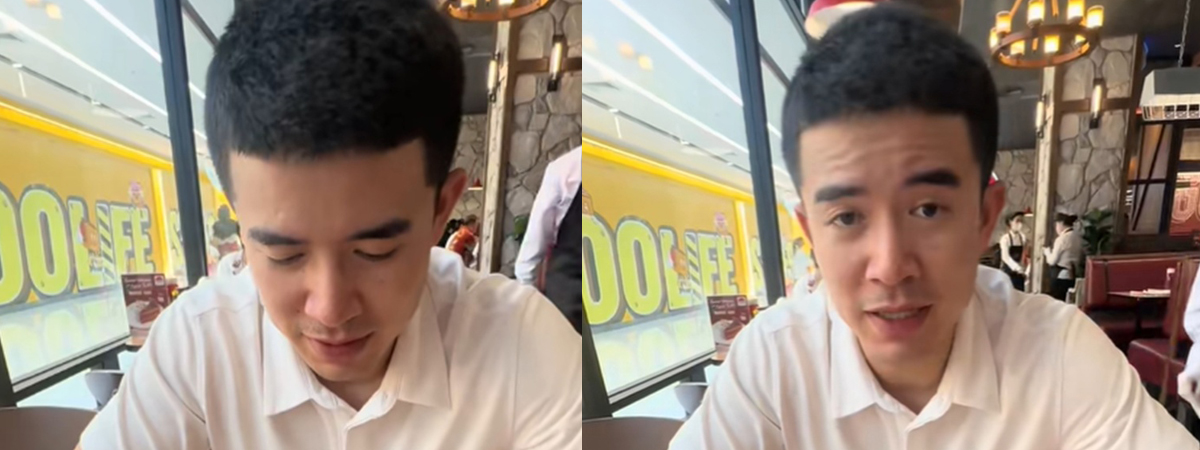 ผู้ใช้ TikTok @bebebell000 ได้เผยภาพหนุ่มพาสาวมาเดตที่ร้านสเต๊ก แล้วอยู่ในช่วงที่กำลังสารภาพรักกัน จับมือพร้อมขอเป็นแฟน ในจังหวะที่กำลังพูดความในใจอยู่นั้น ใบเสร็จอยู่ที่ใต้แขนของเธอ แล้วพนักงานเดินมาหยิบพอดี และเก็บใบเมนูไปด้วย โดนช็อตฟีลแบบถูกจังหวะ จนต่างพากันขำลั่นร้าน