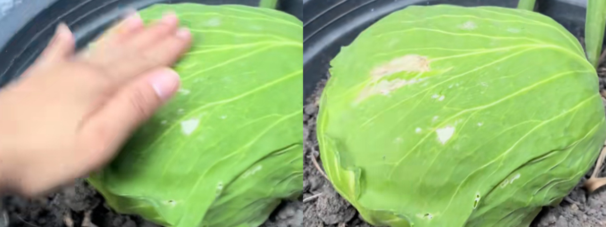 ผู้ใช้ TikTok @my_mom1605 ได้เผยภาพตอนได้กะหล่ำปลีมาจากเพื่อนบ้าน แล้วกินไม่ทัน ไม่รู้จะทำยังไงต่อ เห็นกะหล่ำมีรากโผล่ เลยลองเอามาฝังในดิน แล้วรดน้ำทิ้งไว้ เวลาผ่านไปได้หนึ่งเดือน กลับมาดูผลลัพธ์ที่ได้ เห็นกระถางแล้วตกใจแรง ไม่คิดว่าต้นกะหล่ำยังคงมีชีวิตและเติบโตต่อได้