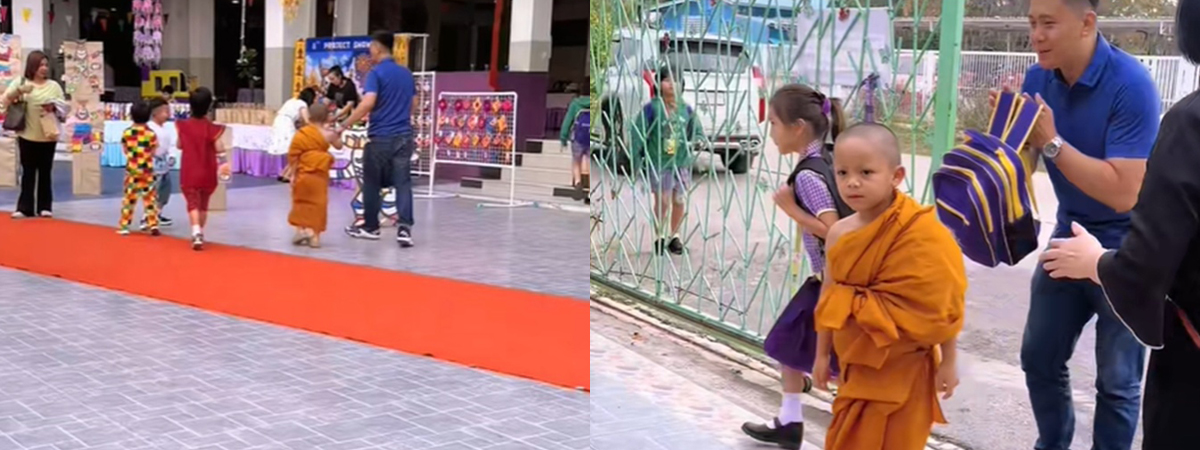 ผู้ใช้ TikTok @user7351575305461 ได้เผยภาพโรงเรียนจัดกิจกรรมพิเศษ ให้นักเรียนแต่งตัวเป็นอาชีพในฝัน พอมาเห็นตอนเดินเข้าโรงเรียน มีนักเรียนอยู่ 2 คน แต่งเต็มจนฮือฮาทั้งโรงเรียน ทั้งโกนผมและจีวรคือเก็บเรียบ นึกว่าเณรที่ไหนเดินเข้าโรงเรียน