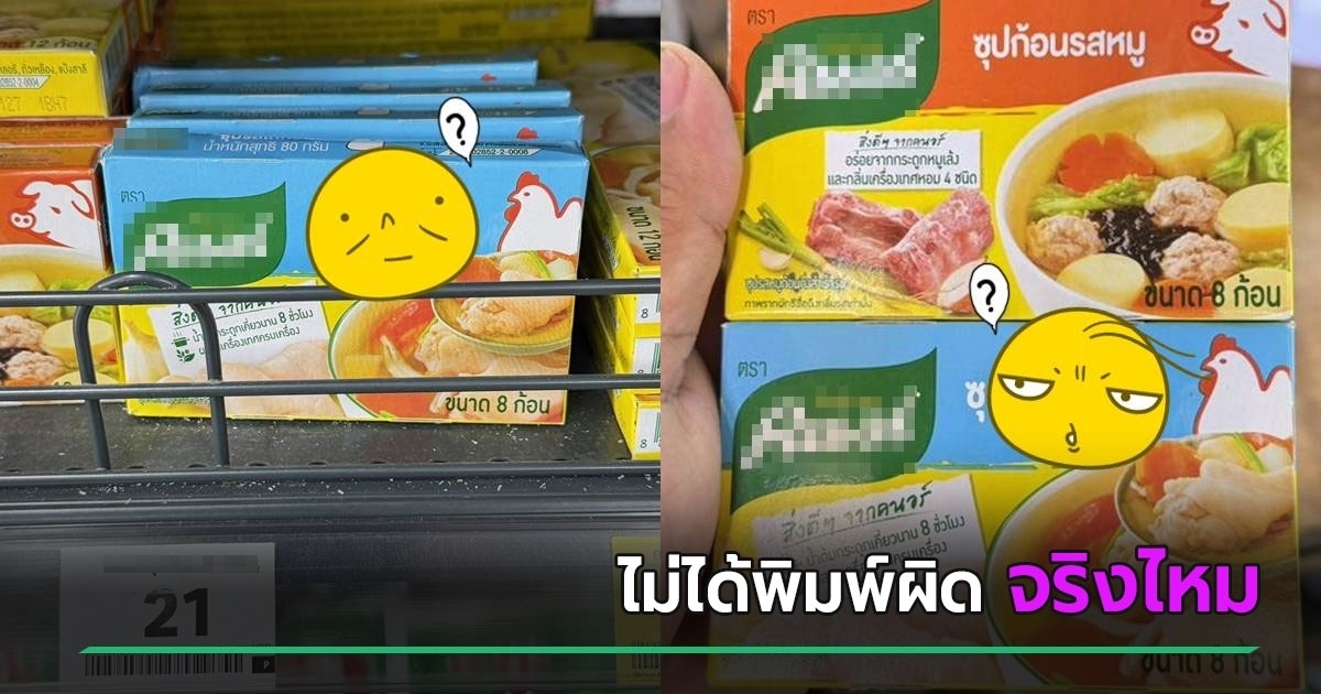 กลายเป็นเรื่องเล็ก ๆ ที่ชวนสะดุดตาในโลกออนไลน์ กรณีเมื่อวันที่ 3 มีนาคม 2569 มีผู้ใช้เฟซบุ๊กรายหนึ่ง โพสต์ในกลุ่ม ความรู้รอบตัว เป็นภาพขณะไปซื้อเครื่องปรุงในร้านค้า แล้วบังเอิญสังเกตข้อความบนกล่อง ซุปก้อนแบรนด์เดียวกัน แต่กลับเขียนไม่เหมือนกัน โดยเจ้าตัว พร้อมตั้งคำถามสั้น ๆ ว่า "อันนี้โรงงานเขาตั้งใจใช่ไหมครับ"
