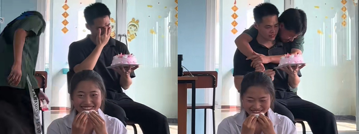 ผู้ใช้ TikTok @ak.040766 ได้เผยภาพนักเรียนทำเซอร์ไพรส์อาจารย์สอนภาษาจีน ถือเค้กวันเกิดพร้อมพากันร้องเพลงแฮปปี้เบิร์ดเดย์ทั้งห้อง จนเหล่าซือเห็นแทบกลั้นน้ำตาไม่ไหว เพราะตั้งแต่เกิดมาไม่เคยได้เค้กวันเกิดเลยสักก้อน อย่างมากก็ทำแค่กินข้าวพร้อมหน้าพร้อมตากับครอบครัว ยังทำนักเรียนในห้องพากันร้องไห้อีกด้วย