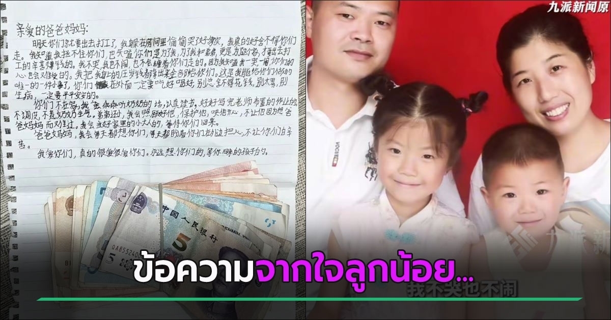 พ่อแม่จะจากบ้าน เจอจดหมายใส่เงินจากลูกน้อย รู้ว่าคือเงินอะไร บีบหัวใจจนอ่านซ้ำไม่ได้ ซึ้งน้ำใจลูกแต่เศร้าใจในเวลาเดียวกัน