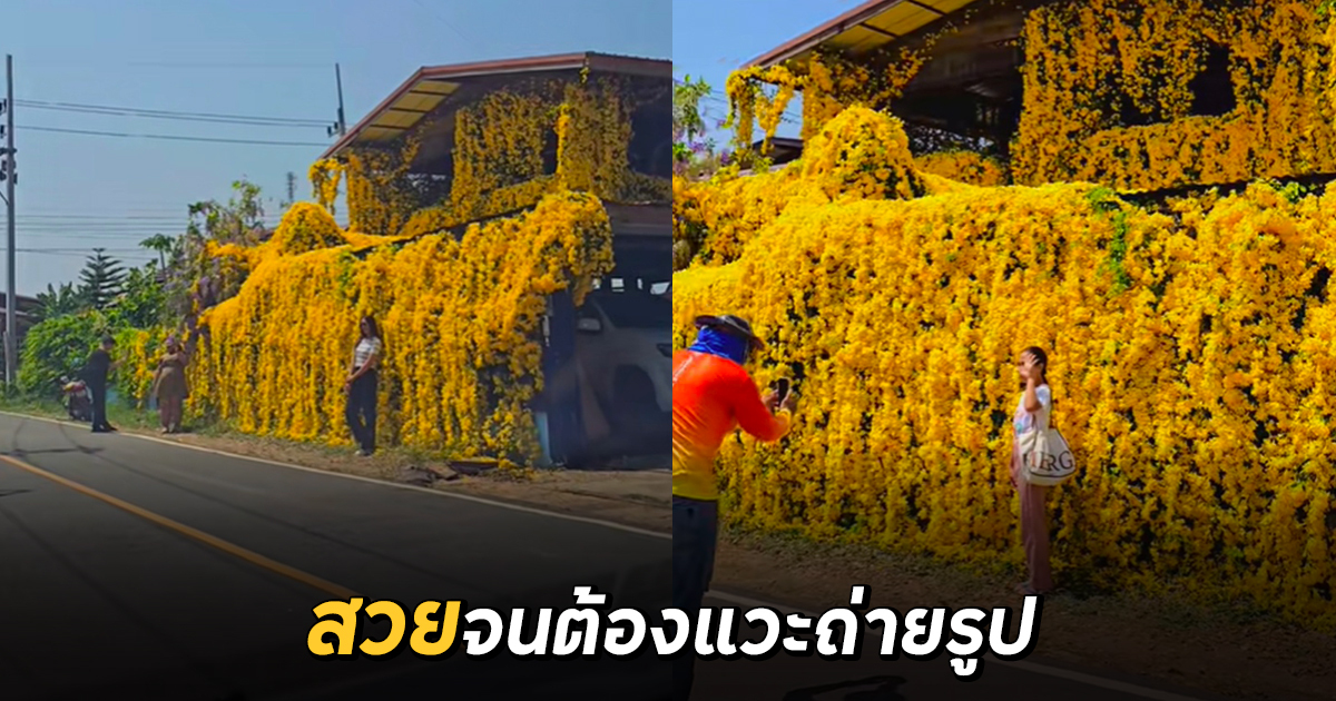 จุดเช็กอินที่ใหม่ เมื่อหน้าบ้านปลูกดอกเหลืองชัชวาลย์ จนคนเห็น ต้องแวะถ่ายรูป