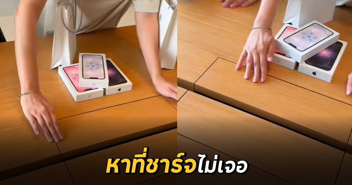 ออกแบบโต๊ะจนงง ชาร์จแบตฯ มือถือในร้าน แต่หาที่เสียบปลั๊กบนโต๊ะไม่เจอ จนต้องขอความช่วยเหลือ