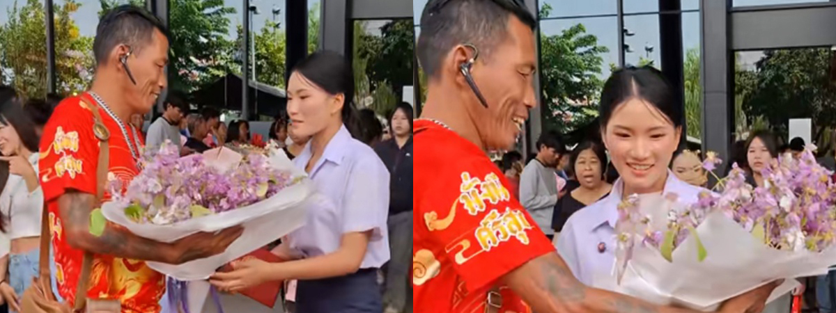 ผู้ใช้ TikTok @mookkkkkkk13 ได้เผยโมเมนต์คุณพ่อ ไปร่วมยินดีกับความสำเร็จของลูกสาว ในวันเรียนจบ แถมยังมอบของชิ้นพิเศษที่พ่อตั้งใจทำให้ลูก คือการเก็บดอกเสลามาจากข้างทาง ซึ่งเป็นดอกไม้ที่ลูกชอบมาก ๆ แล้วนำไปให้ร้านดอกไม้ทำเป็นช่อ โดยทางร้านทำให้ฟรีแบบไม่คิดเงิน ถึงอาจไม่หรูหราเหมือนใครเขา แต่มันก็พิเศษที่สุด เพราะทำมาจากความรักของพ่อที่มีต่อลูกล้วน ๆ