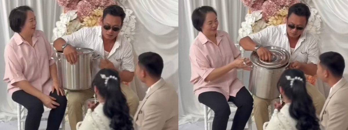 ต้นทุนชีวิตดี ๆ นี่เอง พ่อแม่เอาหม้อให้บ่าวสาวเป็นของขวัญ เปิดดูข้างใน พากันว้าวทั้งงาน