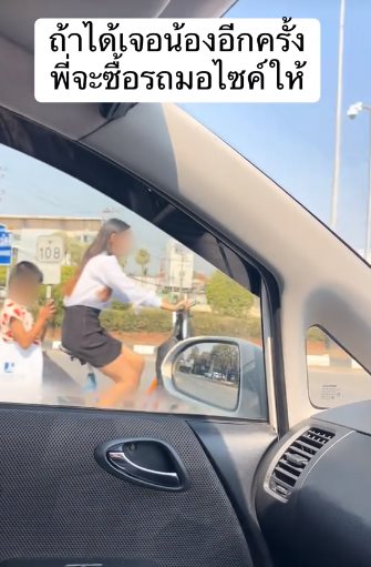 โดยเจ้าของโพสต์ ได้เขียนข้อความระบุว่า "ถ้าได้เจอน้องอีกครั้ง พี่จะซื้อรถมอเตอร์ไซค์ให้" พร้อมทั้งคาดเดาว่า "น่าจะหาสมัครงาน พาน้องไปด้วย มีความมุ่งหมายแบบนี้ ถ้าเจอกันอีกครั้งพี่ซื้อรถมอไซค์ให้ครับ"