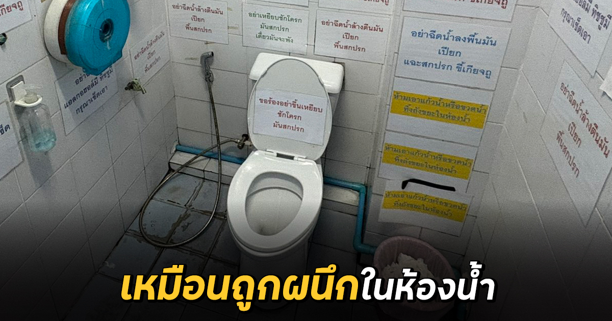 มองไปตรงไหนก็เจอ เข้าห้องน้ำสาธารณะ เจอป้ายติดแบบนี้ เหมือนถูกผนึกยังไงยังงั้น