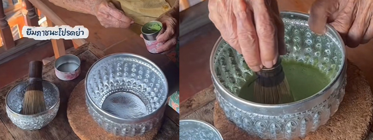 ผู้ใช้ TikTok @moeilin_nn ได้เผยภาพคุณย่า ทำงานฝีมือด้วยอุปกรณ์ชิ้นโปรด มองผ่าน ๆ อาจนึกว่าย่ากำลังตียาหอมอยู่รึเปล่า ด้วยความที่อุปกรณ์ในการทำ ชวนให้น่าคิดไปอีก ก่อนเห็นผลงาน รู้ว่าย่าชงมัทฉะมะยงชิด บอกเลยว่า หน้าตาน่ากินมาก เทียบเท่าระดับคาเฟ่ได้สบายเลย เป็นเพราะฝีมือของคุณย่าล้วน ๆ