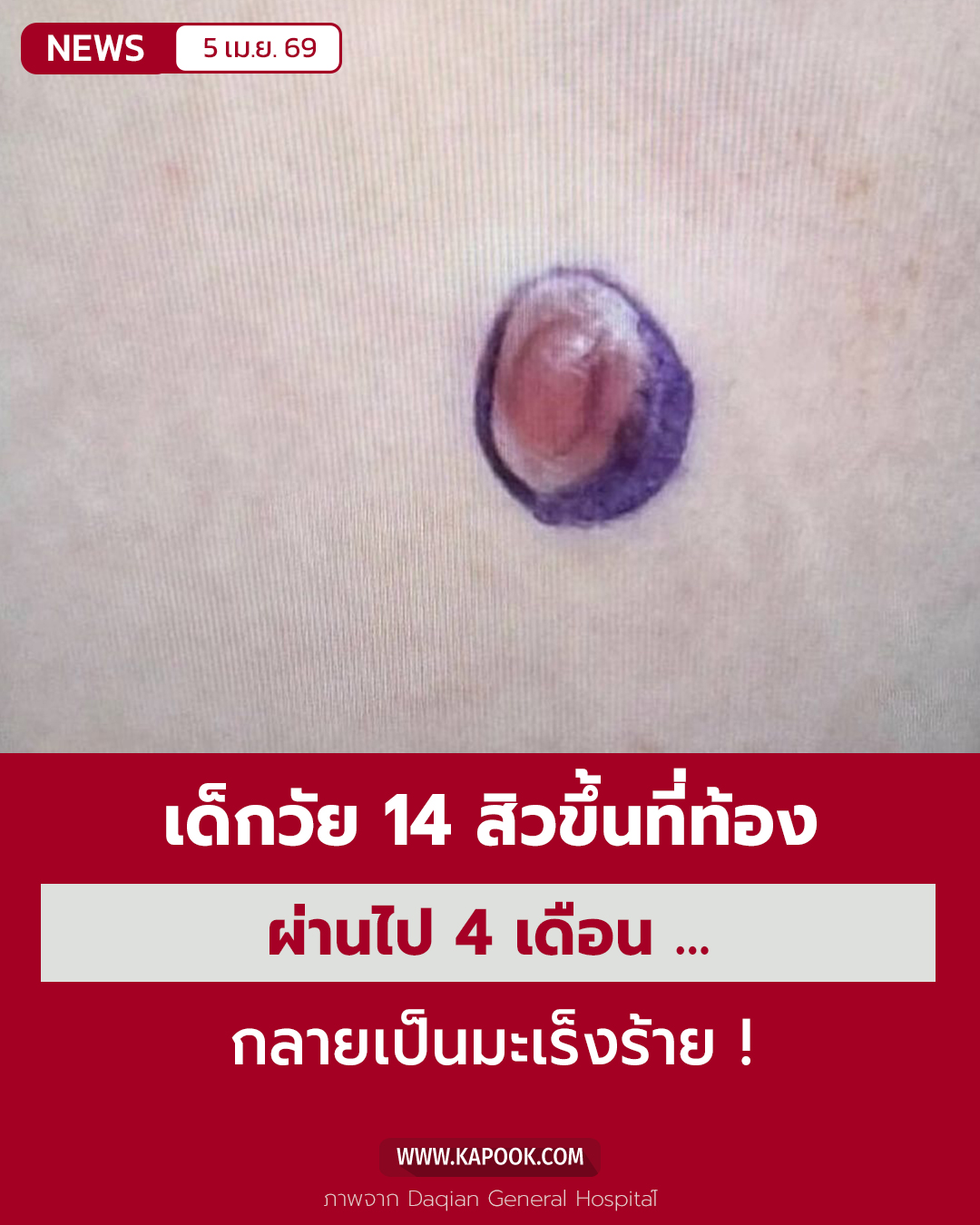 เผยเคสคนไข้เด็กชายวัย 14 ปี คิดว่าสิวขึ้นที่ท้อง ผ่านไป 4 เดือนไปตรวจ กลับกลายเป็นมะเร็งร้าย หมอชี้เป็นชนิดหายาก และรุนแรง