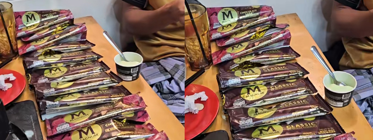 ผู้ใช้ TikTok @idrees_sofeeyah ได้เผยนาทีลูกค้าหยิบไอศกรีม Magnum นั่งกินในร้านบุฟเฟต์ หยิบแบบวางเรียงเต็มโต๊ะ กว่า 30 แท่ง กินแบบเอาให้คุ้มและอิ่มหนำใจ จนเกิดกระแสวิพากษ์วิจารณ์สนั่นโลกออนไลน์