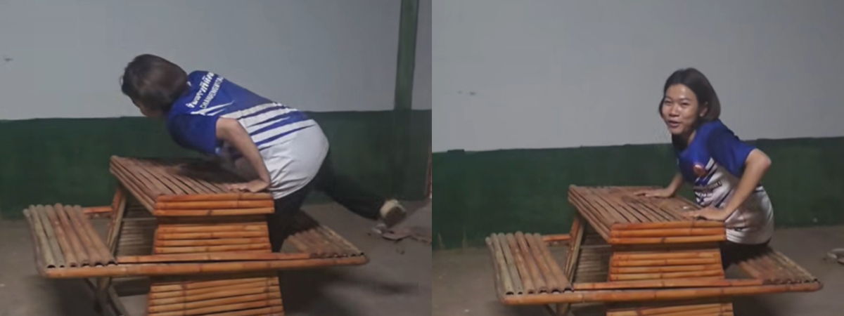 เฟซบุ๊ก เจ๊ กุ้ง อินตง ได้เผยภาพคุณพ่อท่านหนึ่ง ไม่ได้เรียนจบช่าง แต่อยากเป็นช่างประจำบ้าน เอาไม้ไผ่มาทำเป็นโต๊ะให้ลูกนั่งเล่นสบาย ๆ หลังจากเสร็จจนเป็นรูปเป็นร่าง ลูกได้ลองไปนั่ง ผลปรากฏว่า แทบหงายหลังไม่เป็นท่า สงสัยโต๊ะอันนี้จะออกแบบมาเพื่อให้นั่งแบบสามัคคีกัน