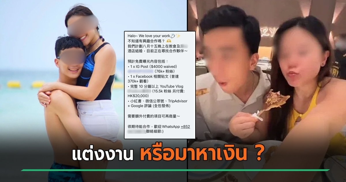 รายงานเปิดเผยว่า หญิงสาวจากฮ่องกง ซึ่งเป็นอินฟลูเอนเซอร์สายอาหาร มีผู้ติดตามรวมราว 70,000-75,000 คน บน Instagram, Threads และ RedNote ถูกผู้ให้บริการด้านงานแต่ง ทั้งช่างภาพ ร้านชุดเจ้าสาว และช่างแต่งหน้า ออกมาแฉว่า เธอติดต่อมาขอรับการสนับสนุนบริการและสินค้าแบบฟรี ๆ นอกจากนี้เธอยังแนบ เรตราคา สำหรับโพสต์โปรโมตผ่านโซเชียลของเธออย่างละเอียดไปด้วย