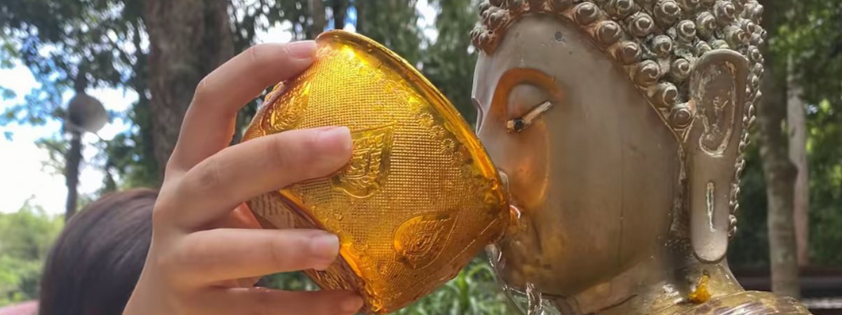 ทวิตเตอร์ @lolong___ ได้เผยภาพมีมดังบนโลกโซเชียล ที่ใช้ได้กับเทศกาลสงกรานต์ในทุก ๆ ปี ซึ่งเป็นภาพของหญิงสาวท่านหนึ่ง กำลังสรงน้ำพระ เพื่อเสริมบุญและสิริมงคลแก่ตัวเอง ด้วยความที่อากาศค่อนข้างร้อน สงสัยกลัวว่าพระจะหิวน้ำ เลยสรงน้ำแบบใหม่ ป้อนน้ำท่านภายในตัว ไม่รู้ว่างานนี้จะอิ่มบุญหรือบาปมากกว่ากัน