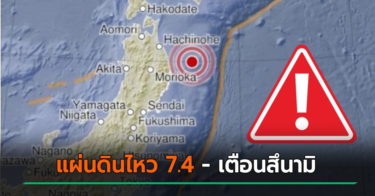 ญี่ปุ่นระทึกอีก แผ่นดินไหว 7.4 นอกชายฝั่ง เตือนสึนามิ 3 เมตร ใน 3 จังหวัด นายกฯ ขอคนในพื้นที่อพยพทันที พบบางพื้นที่ไฟดับ