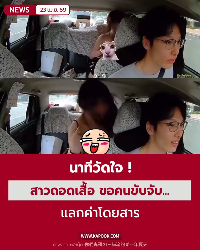 นาทีระทึกบนแท็กซี่ ผู้โดยสารสาวเสนอตัว แลกจ่ายค่าโดยสาร ถอดเสื้อชั้นใน ขอให้คนขับจับหน่อย เจอปฏิเสธบอกอันตราย บอกให้จอดทำกันข้างทาง