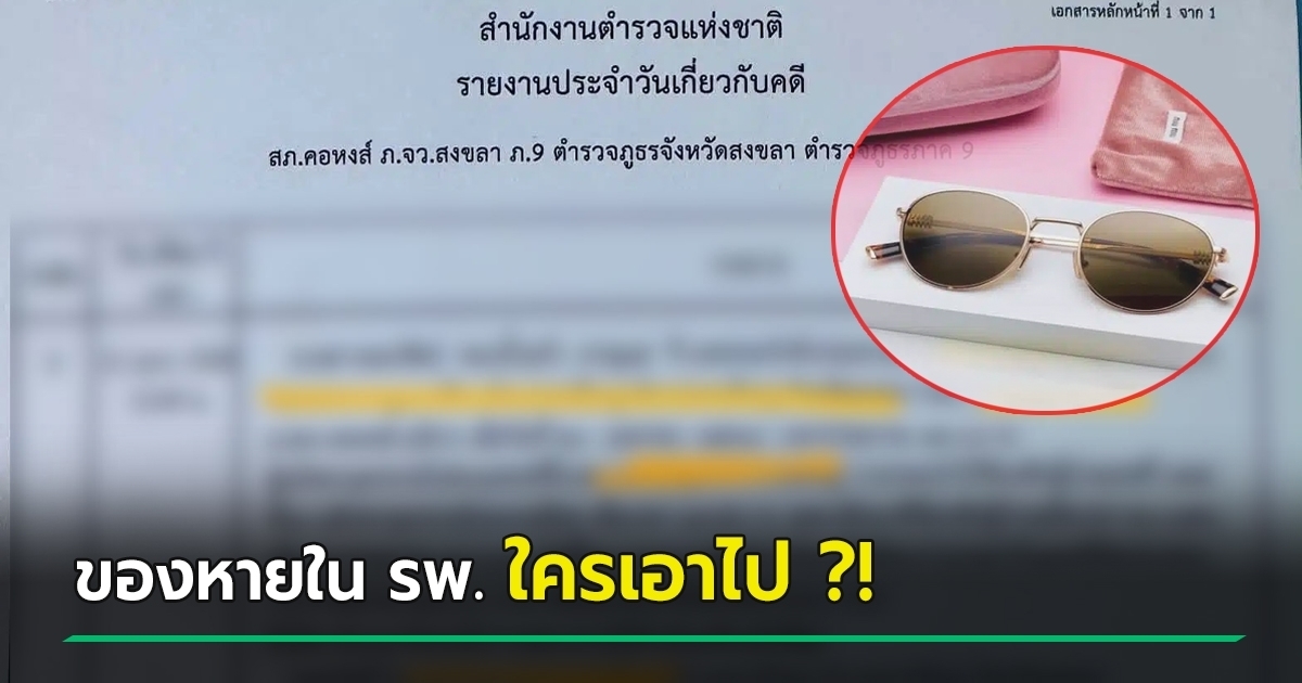 วันที่ 22 เมษายน 2569 ผู้ใช้เฟซบุ๊ก Fa'Faii Thongnamkeaw เล่าประสบการณ์ทรัพย์สินหายปริศนาในโรงพยาบาลเอกชนชื่อดังในหาดใหญ่ จ.สงขลา หลังพาลูกเข้าแอดมิต ก่อนพบแว่นกันแดดหายจากห้องพัก โดยตั้งคำถามระบบความปลอดภัยและการจัดการของโรงพยาบาล หลังกล้องวงจรปิดบางจุดใช้งานไม่ได้ และการตรวจสอบที่ล่าช้า