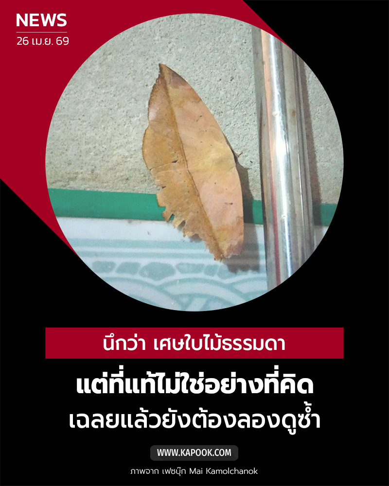 วันที่ 25 เมษายน ผู้ใช้เฟซบุ๊ก Mai Kamolchanok โพสต์ลงในกลุ่ม นี่ตัวอะไร พร้อมภาพชวนงง เมื่อสิ่งที่เห็นตอนแรกเหมือน ใบไม้แห้ง แปะอยู่กับผนัง แต่พอดูใกล้ ๆ กลับไม่ใช่อย่างที่คิด