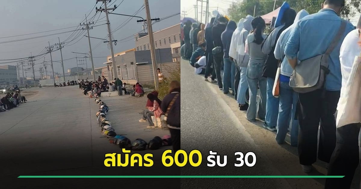 วันที่ 28 เมษายน 2569 เฟซบุ๊ก ข่าวใหญ่ พานทอง-ชลบุรี มีการลงภาพโรงงานแห่งหนึ่งในพื้นที่พานทอง จ.ชลบุรี มีคนมาต่อคิวสมัครงานประมาณ 600 คน แถวยาวกว่า 1 กิโลเมตร ทั้งที่โรงงานรับเพียง 30 คนเท่านั้น
