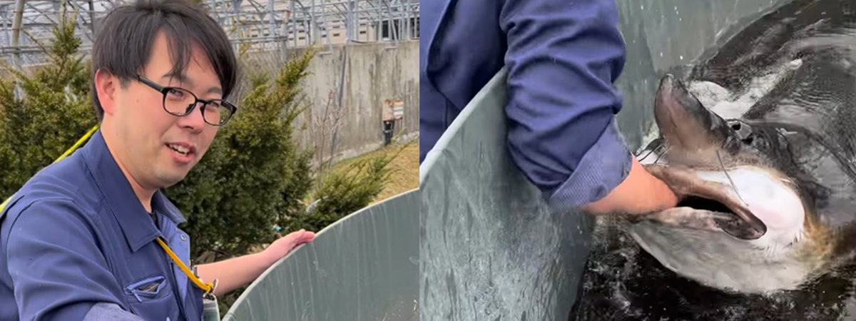 อินสตาแกรม @shibetsu_salmon_museum ของพิพิธภัณฑ์ปลาแซลมอน ที่เกาะฮอกไกโด ประเทศญี่ปุ่น ได้เผยภาพผู้ดูแลปลาท่านหนึ่ง สาธิตการให้อาหารปลาสเตอร์เจียนตัวใหญ่ เพียงแค่ถือปลาที่เป็นอาหาร แล้วจุ่มลงน้ำ เจ้าปลาสเตอร์เจียนโผล่เหนือน้ำ งับเข้าไปทั้งแขน จนชาวเน็ตพากันเหวอทั้งโซเชียล
